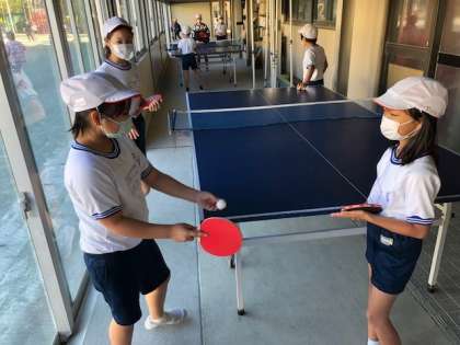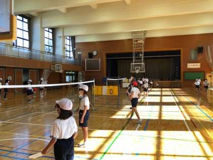 卓球クラブではすてきな場面に出会いました。「ラケットの角度は、ななめになるようにかまえるとうまくいくよ」と上級生が下級生にとても優しく教えていました。異学年同士の心温まる交流が育まれています。
