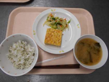 かおりごはん 切干大根の卵焼き 野菜のこぶ茶和え みそ汁 牛乳