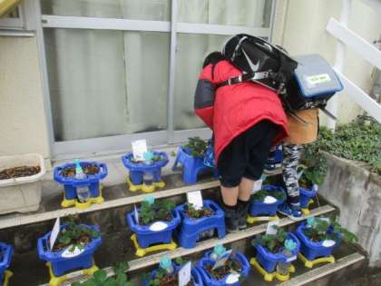 生活科で、2年生が育てている野菜などがすくすく育っています。登校した時や下校する時にしっかり水をあげています。「大きくなったよ!」「実ができたよ!」と報告してくれます。育てる野菜を自分で決めて、育て方を調べてから育てているので、大切にしようという気持ちが強いのかもしれません(種や苗など、ご準備いただきありがとうございました)。自分たちの野菜が大きく育った時に、子どもたちがどんな顔を見せてくれるのか、楽しみです。
