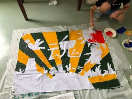 5年生は運動会で各クラスが「大漁旗」を出します。今日も朝から2組の児童有志が作業をしていました。丁寧に色を塗っていました。クラスごとにどんな大漁旗がお披露目されるのか、そこにも注目しています。