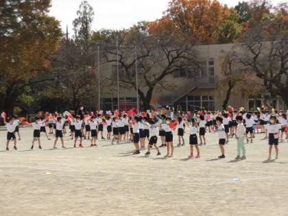 校庭で1,2時間目には2年生が、3,4時間目には1年生が運動会の練習に取り組みました。2時間をかけて表現と徒競走の両方を、それぞれ入場から退場まで通していました。パートで区切りながら振付の練習をしていた先週までとは比べものにならないくらい、まとまった動きになっていました。
