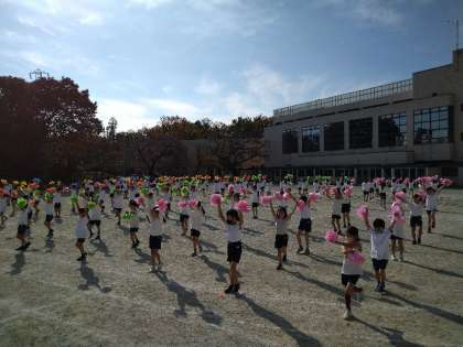 2年生「やってみよう!おどってみよう!」では、テンポの速い曲に合わせて踊っています。流れる動きに見応えがあります。