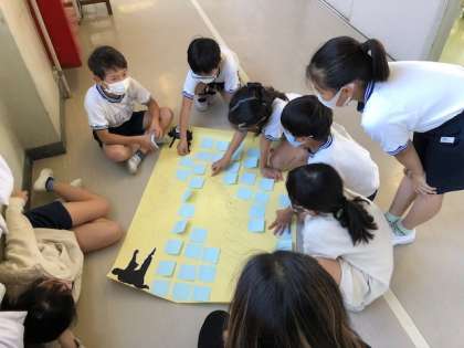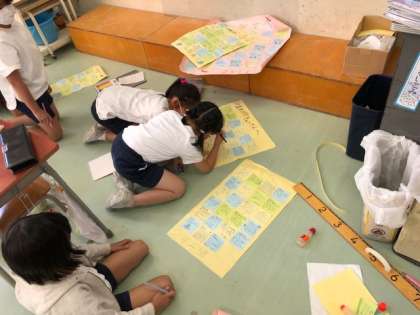 児童鑑賞の終了後、交流の対象学年の演技について感想を書き、模造紙に貼って交流に向けての準備を進めていました。運動会に向けてみんなが精一杯練習を重ねてきました。互いの頑張りやよさを認め合い、みんなが「がんばってよかった」と思えるようにしていきます。