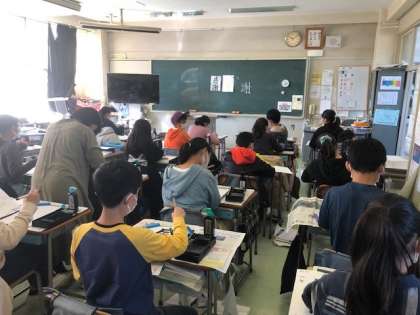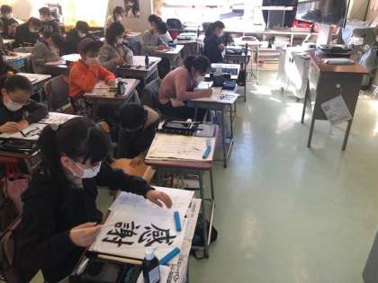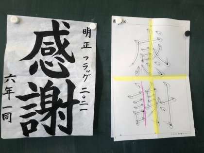 6年2組は習字で「感謝」の文字を書いていました。運動会の一連の取組で、お世話になった大学生ボランティアや朝練習への送り出しや健康管理で支えてくれた保護者、そして励まし合い、教え合いながら互いを支え合った仲間、それらの人たちへの「感謝」を文字に込めて書いていました。