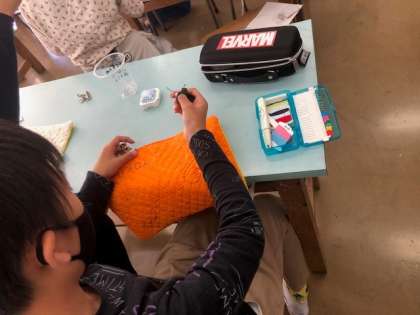 5年生のランチョンマットづくりも終盤に入ってきたようです。ミシンや手縫いで刺繍を施していました。きっとここまでたどり着くのには多くの苦労もあったはずです。その分、完成の喜びも大きい事でしょう。いつまでも大切に使っていけるとよいですね。