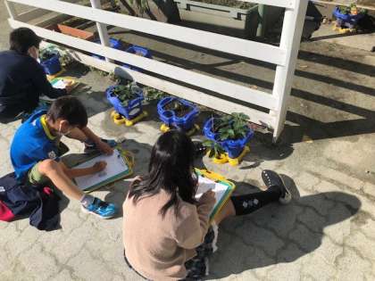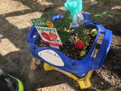 秋の太陽をたくさん浴びて、2年生がチャレンジしている野菜などの栽培は順調に進んでいるようです。育てているイチゴの中には、もう真っ赤に身を付けているものもありました。すでにおいしそうです。