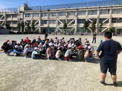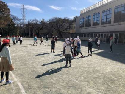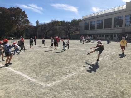 4時間目、校庭では3年3組と5年4組の交流会が行われていました。氷おにやドッジボールで楽しく汗をかいて、交流を深めました。随所で見せる5年生の優しさが印象的でした。体力的にも差がある相手も楽しめるようドッジボールのルールを工夫したり、ボールを投げる勢いを加減したりして、相手の様子を見ながら遊んでいました。3年生が楽しそうにしている姿が5年生の喜びにもつながっているようで、そんな姿がとても微笑ましく映りました。