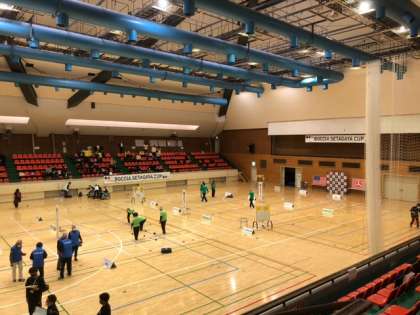 今日は2021ボッチャ世田谷カップです。明正小ひまわりきらりんチームが会場入りしました。9時30分からウォーミングアップです。