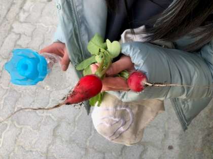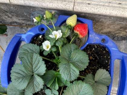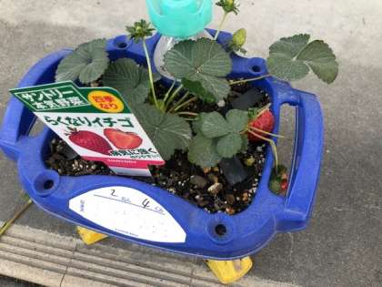 2年生が生活科で育てている野菜やイチゴが順調に実を付けています。帰り際、収穫したラディッシュを誇らしげに見せてくれました。色がよく、とてもおいしそうです。鉢植えを見るとイチゴも真っ赤な実を付けていました。子どもたちは熱心にお世話を続けてきました。その成果が表れています。