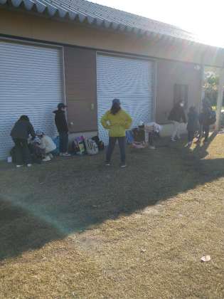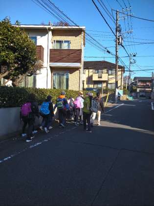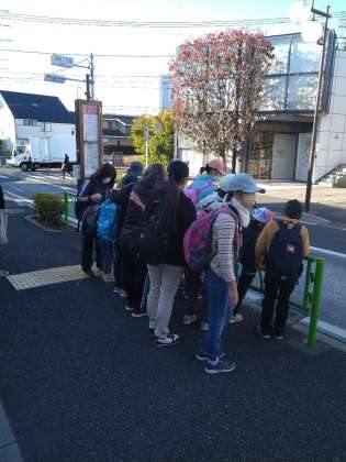 ひまわり学級は、深沢の秋山農園に大根掘りに行きます。決まったバス停できちんと降りて、農園に到着しました。これから大根を掘ります。