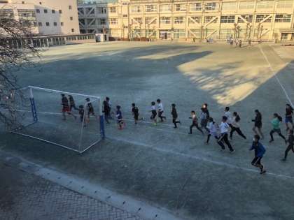 今朝は、世田谷こども駅伝の出場する5,6年児童の朝練習の日でした。最近、朝の冷え込みが厳しくなっていますが、自主的に練習をする児童もいて、やる気と熱気に満ちた朝が続いています。今日は2000mのペース走を行いました。決められた時間内に1周するように残り時間を教員が読み上げました。周数が上がるにつれ、列も縦長になっていきましたが、みんな最後までがんばり、しっかりと2000mを走り切りました。本番は12月19日(日)です。教職員全員で応援していきます。