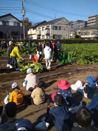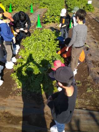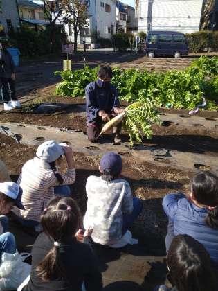 農園の方に抜き方を教えていただき、力いっぱい抜きました。立派な大根がたくさんとれました。