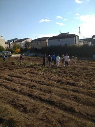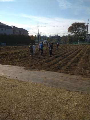お弁当を食べ終わりました。農園の方のご好意で、収穫の終わった畑で遊ばせてもらっています。鬼ごっこや土いじりなど、楽しんでいます。