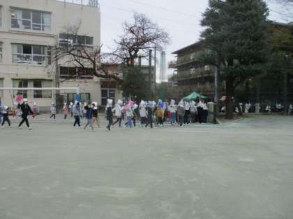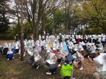 給食室からの出火を想定した避難訓練を行いました。延焼の恐れがあるため、校庭ではなく、里山の鉄塔広場へ直接、避難しました。これまでの避難訓練でも感じていたことですが、明正小の子どもたちは、おしゃべりをせずに黙って避難することができます。850名を超える子どもたちが黙って避難できることは、私の経験を振り返ってもすごいことです。本番がないことが一番ですが、もし、起きてしまっても安心できると感じています。緊張感をもって訓練できることが大切です。これからも心がけてほしいと思います。