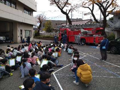 3年生が校外学習で成城消防署に見学にきています。これまで教室で写真などの資料から学習してきました。その中で、聞いてみたい疑問が生まれました。ぜひ解決してほしいと思います。