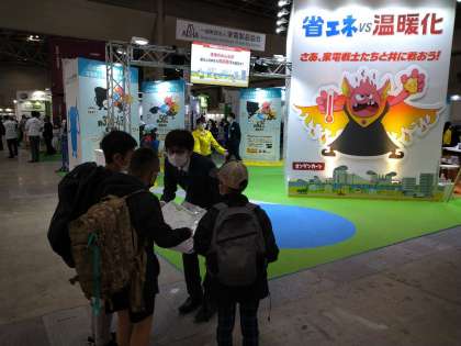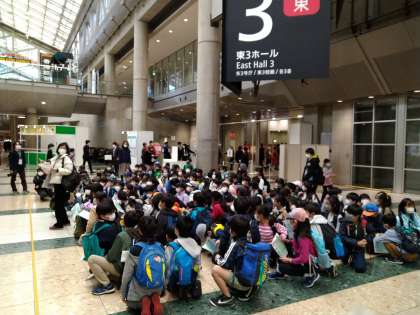 今日は4年生が「エコプロ2021」に参加しています。無事に到着し、見学を始めました。地図を見て、計画したブースを回っています。