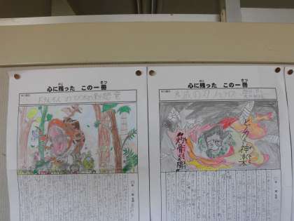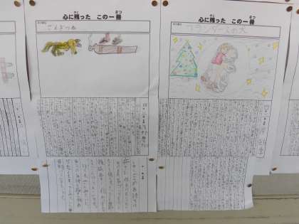 各クラスの掲示板に児童が読んで心に残った本を紹介しています。保護者会のおりにご覧になった方もいらっしゃることと思います。