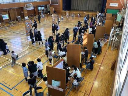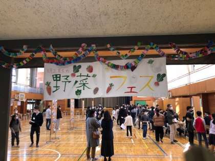 これまで明正小で育ててきた野菜を通して学んだ成果を、お家の方々に伝えることを目的に5年生が「明正育ちの野菜フェス2021」を開催しました。全て児童の手作りの物で会場が作られていました。にんじんグループ、小松菜グループなどの野菜をテーマにしたり、再生栽培グループ、栄養グループなど野菜について調べたことをテーマにしたりと様々なブースがありました。また発表の形式もバラエティに富んでいて、クイズにしたり、紙芝居にしたりと、これまで児童が獲得してきた表現手段を、児童が選択して発表していました。児童の関心や意欲から出発し、児童自身が目標を決め、児童自身の手でそれを実現したこの一連の学習を通して、また一段とたくましく成長したことを児童の姿を見て感じました。