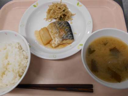 ごはん さばのみそ煮 ごま酢あえ じゃがいもとわかめのみそ汁 牛乳