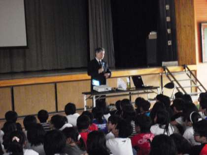 第一部は、5・6年生への道徳特別授業として講演を実施しました。震災の経験をお話していただく中で、子どもたちへ「自分たちができること」を考え、行動してほしいというメッセージをもらいました。大変長い時間だったにもかかわらず、子どもたちはとてもよく話を聞いていました。さすが5・6年生です。