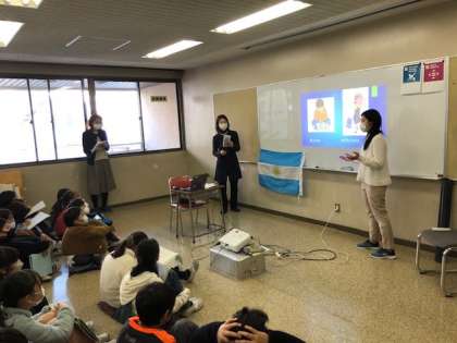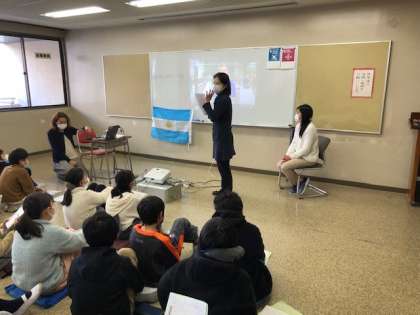 今日の外国語は、アルゼンチンの小児科医で現在、ジャイカから日本の大学に研修にきている方をゲストティーチャーに招いてのSDGs授業を行いました。アルゼンチンでは、この方が子どものころと比べ、物価が高くなっており、貧富の差が拡大しているというお話がありました。牛乳1Lや映画のチケットなどの値段が、子どもの頃よりも100倍単位で上がっているという話に、子どもたちは驚いていました。また、アルゼンチンは治安状況に不安があるため学校への登下校には必ず大人が付き添っているという話がありました。これらの話を聞いて国の状況というのは、その国によって様々であることを具体的に感じ取ることができました。