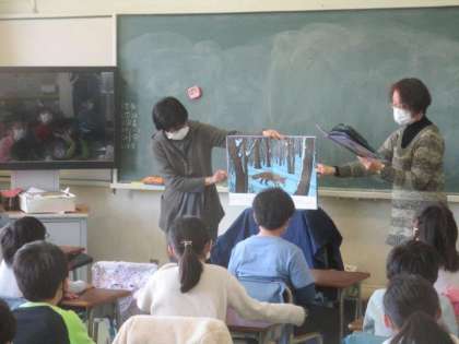 3年生への、さくらママのお話会がありました。「きたきつねのゆめ」という本を読んでくださりました、空気も凍るような冷たい森で、きつねが不思議な体験をします。最後には仲間のきつねに出会い、春を迎える頃には、家族が増えましたというお話でした。また、「ふしぎな太鼓」という話をしてくださいました。鼻を高くしたり低くしたりできる太鼓を持った「げんごろう」さんが、鼻を高く高く伸ばしていると、天国にまで届いてしまって・・・というお話で、聞いている子どもたちから笑い声がこぼれてしまうようなものでした。さくらママな皆様、今日のお話会もありがとうございました。