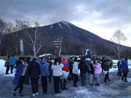 宿舎を出発しました。戦場ヶ原の三本松で、学年の集合写真を撮ります。