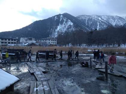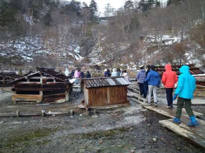 湯元温泉の源泉にきました。硫黄の臭いがプンプンします。