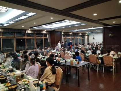 2日目の夕食です。林間学園の夕食は最後です。夕食の後は日光彫をしますので、お腹が空かないようにしっかり食べてほしいと思います。