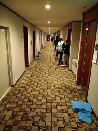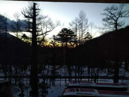 3日目が始まり、朝会が終わりました。布団を畳んだり荷物をまとめたりしています。今日もお天気はよさそうです。