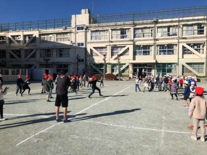 4年2組主催で1年5組との異学年交流会が開かれました。ドロケイで遊んだ後はドッジボールです。ところが、チーム分けなどの説明やチームに分かれるところで予想以上に手惑い、時間がどんどん過ぎていきます。ドッジボールを楽しめたのはわずかな時間となってしまいました。4年生にとっては1年生を相手に交流会を運営するのは初めての経験でした。自分が考えてた以上に年下の子とかかわり、楽しませることは難しい事なのだということを肌で感じる貴重な経験となりました。この経験は今後に必ず生きると思いました。