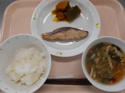 ごはん ぶりのゆうあん焼き かぼちゃの含め煮 沢煮椀 牛乳