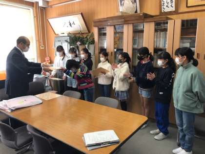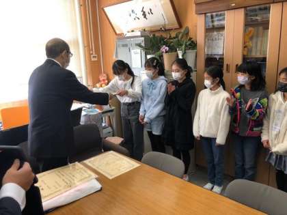終業式終了後、12月19日に行われた「世田谷こども駅伝」に出場した5,6年生の選手への表彰式を行いました。残念ながら6連覇は果たせませんでしたが、みんな力を出し切ったすがすがしい表情で、校長先生から表彰状を受け取りました。表彰状は保健室前に掲示しています。お立ち寄りの際に是非ご覧ください。