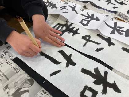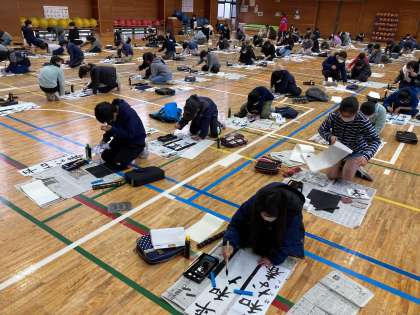 11日に体育館で、4年間の毛筆学習の成果を発揮して、丹念に書き上げました。