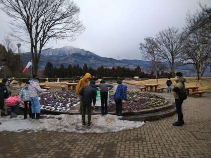 赤城高原サービスエリアに到着しました。雪をさわって興奮です!谷川岳がきれいに見えました。