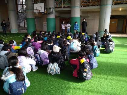 開室式を行いました。ビレジの方のお話では、冬だからこそ分かることがあるそうです。それは雪が積もっているので動物の足跡を見られることです。午後の里山入門で見つけられるといいですね。
