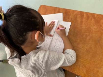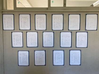 お手本を見ながら、鉛筆で丁寧に書くことができました。完成した作品は、各クラスに掲示してあります。是非、ご覧下さい。