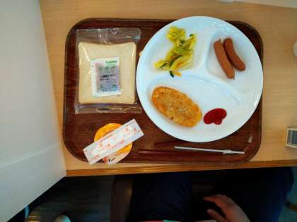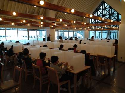 2日目の朝食です。これからの野外活動のために、しっかり食べましょう。