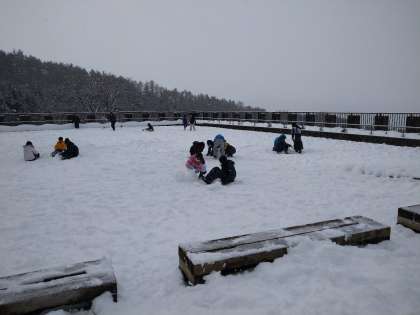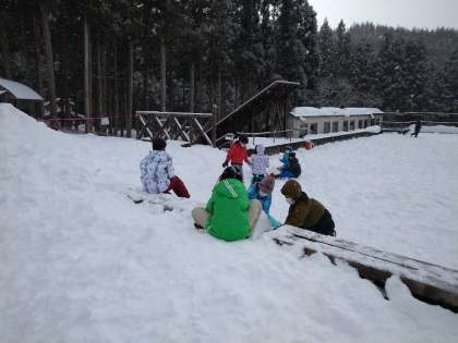 野外活動が始まりました。グループで制限時間に「トトロ」を作ります。どんなトトロができるのか楽しみです。サラサラの雪が積もっています。雪だるまを作るのは難しそうです。