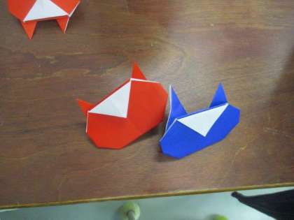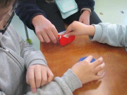 ひまわり学級では、朝の時間等に継続して折り紙に取り組んできました。はじめは、時間がかかったり、きれいに折れたりしなかったのですが、回数を重ねることで角と角を合わせてきれいに折ることができるようになりました。かかる時間も短くなっています。今日は、「オニ」を折っていました。もうすぐ節分ですね。