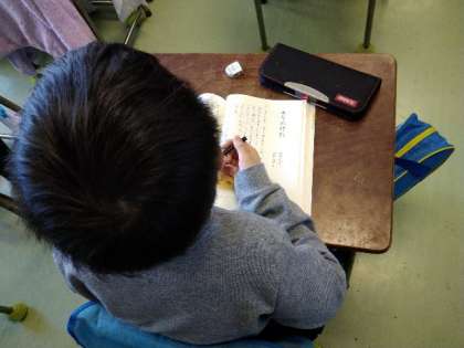 3年生は国語で説明文の学習をしています。文章から「問い」と「答え」を見つけたり構成を捉えたりします。「なぜ、ありの行列ができるのでしょうか。」ありはおしりから特別な液を出して道しるべにしているそうです。「ありの行列」のお話は、長い間、教科書に載せられています。身近にある不思議な事を取り上げた興味深い説明文です。