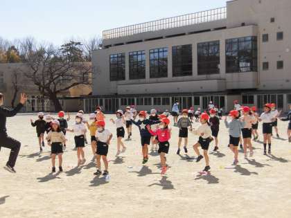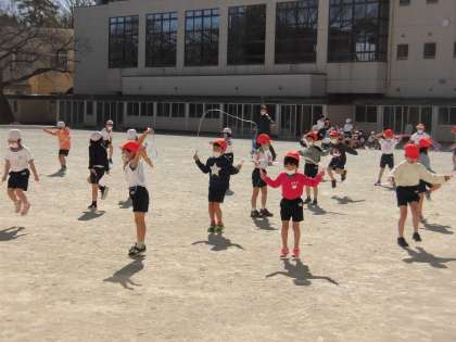 そんな中でも校庭では1年生が「エビカニクス」の音楽に合わせて元気に準備運動をしていました。にこにこと楽しそうに踊る姿に思わず手拍子を送りたくなりました。なわとびも使ってしっかり体を動かすと、すっかり暖かくなったようで上着を脱ぐ子どももいました。気温の低い日が続きますが、寒さに負けない体づくりを心がけたいです。