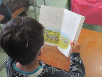 国語で、説明文の「どうぶつの赤ちゃん」を学習しています。ライオン、しまうま。カンガルーの赤ちゃんを比べ、違うところや、似ているところを読み取っていきます。教科書だけではなく、他の本も活用して、自分だけの「どうぶつ図鑑」をつくる予定です。
