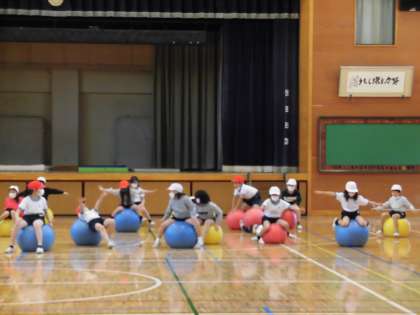 体育館で2年生が体づくりを目指した運動に取り組んでいました。
