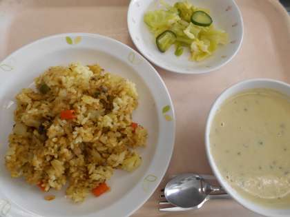 カレーピラフ フレンチサラダ コーンポタージュ 牛乳
