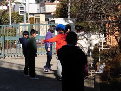 校門近くで6年生が、学習発表会で上映する映画の撮影をしていました。先日は映画プロデューサーとして活躍されている方のアドバイスをいただきました。適確で分かりやすいご指導をうけて、子どもたちの映画づくりの意欲がいっそう高まっています。
