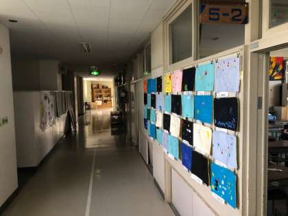 5年生は、家庭科でランチョンマットづくりをしました。初めてミシンを使って縫い物をしましたが、どの児童もしっかりと縫い付けられたランチョンマットを完成させました。各教室前に展示しています。