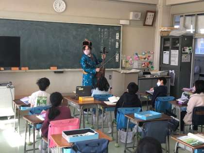 2年4組の国語の様子です。物語文「スーホの白い馬」の学習に入りました。第2時間目の今日は「物語のあらすじをつかみ、感想を書こう」という内容でした。昔の中国で作られたお話ということもあり、子どもたちにとって想像が難しい部分もあるため、担任はモンゴルの民族衣装に着替えて実物の馬頭琴や馬の骨、羊毛などで作られたおもちゃ、装飾品を子どもたちに見せました。子どもたちは大喜びでした。これからも物語の世界を存分に味わい、感じたこと考えたことをたくさん交流していくことを大切にしながら指導を進めていきます。