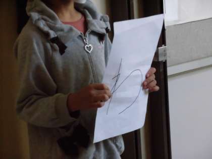 「私は「わ」のひらがなを上手に書けるようになりました。」大きな声ではっきりと発表することができました。撮影前には少し緊張した様子でしたが「OK。ばっちりよ。」の声を聞いて笑顔がこぼれました。