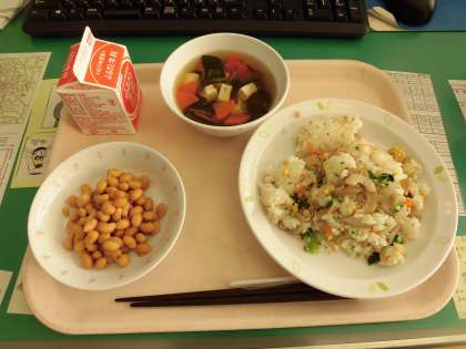 今日の給食は春の香りのする菜の花寿司でした。色鮮やかな具材のたくさん入ったお寿司は、見ただけで心が華やぎます。